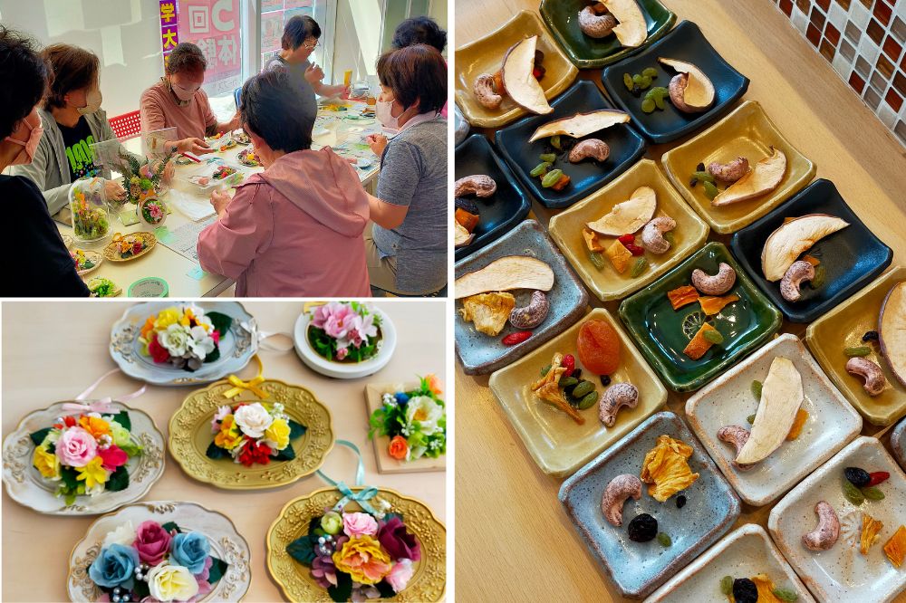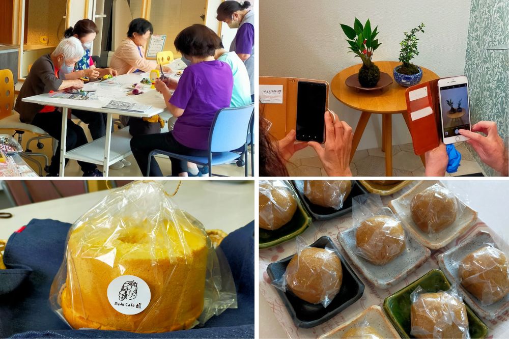 写真は、リフォームプラザイシグロで再開したスタッフによる月に一度の「まちCafé」の様子です。お茶やおやつをいただきながら、手軽に趣味を楽しんでいただいています。
