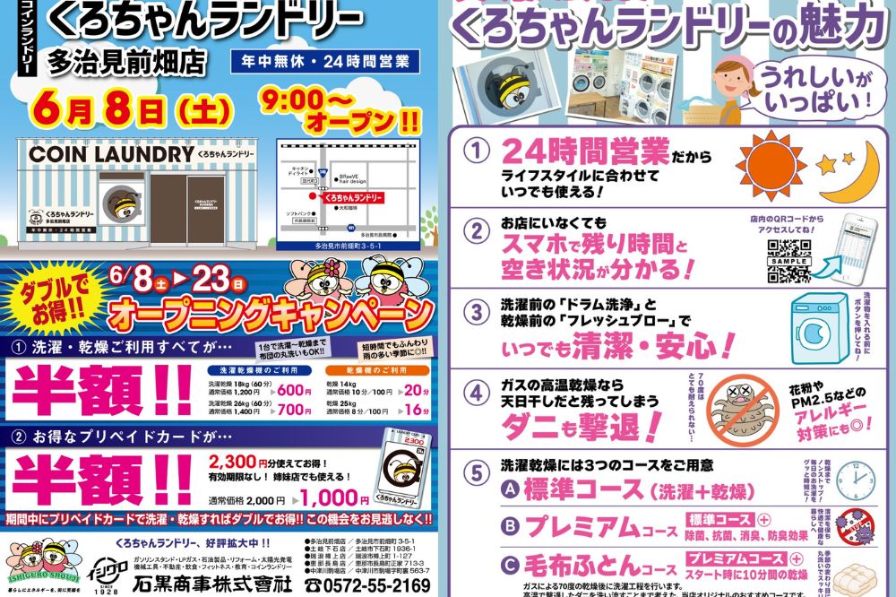 2024年6月8日(土)多治見市前畑町にくろちゃんランドリーがオープンしました!